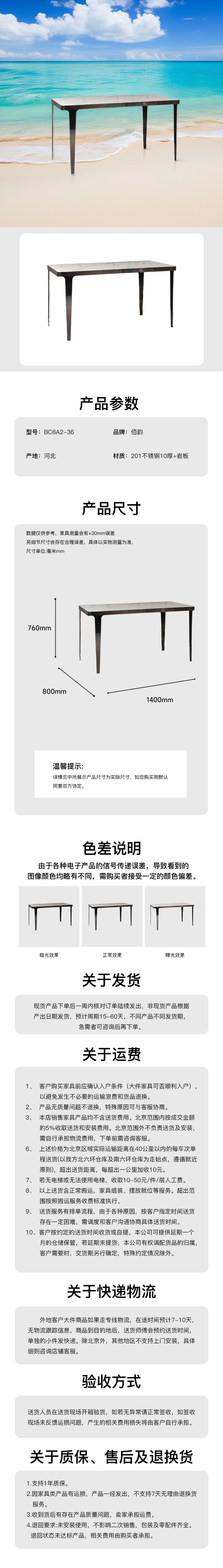 餐桌201不锈钢10厚+岩板 BC6A2-36