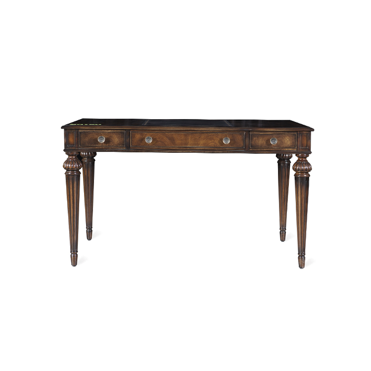 小书桌,主体为美国进口鹅掌楸实木,配合进口稀有黄金旋涡花的薄片与樱桃木薄片结合,采用阿克苏诺贝尔环保油漆。桌面中间的皮桌面解决书写问题,烫银的皮面压纹增加了产品的价值感,中间的键盘抽可放置电脑键盘,整体造型简洁。与精制羞羞视频成人APP下载丽城印象系列类似,售价约是其40%。