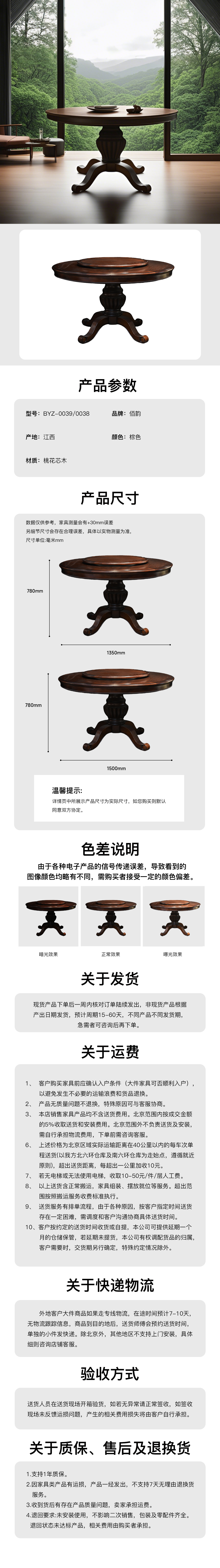 M3303圆餐桌1.35米(含转盘)桃花芯木