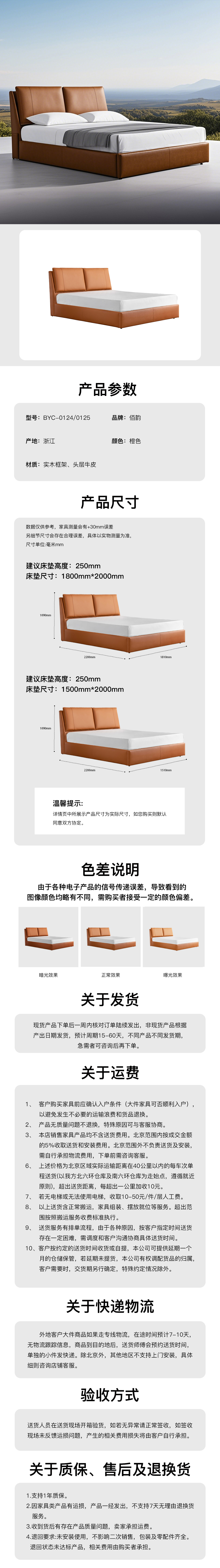 主材:齐边床 进口头层黄牛皮(接触面) 夹板:欧盟E1级环保标准