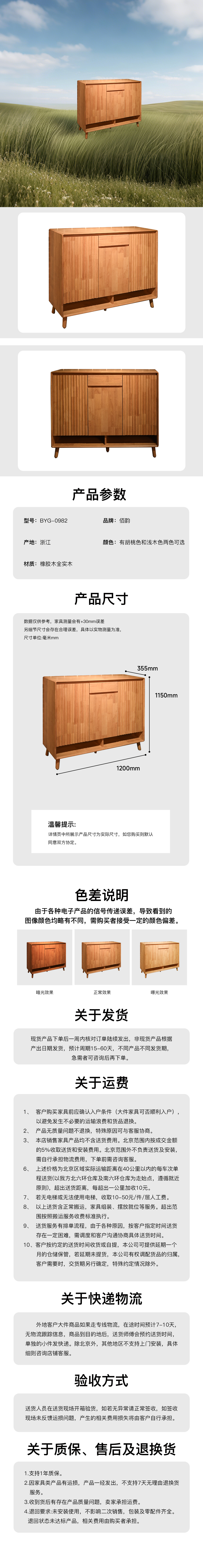 1200宽带抽鞋柜-浅木色橡胶木全实木