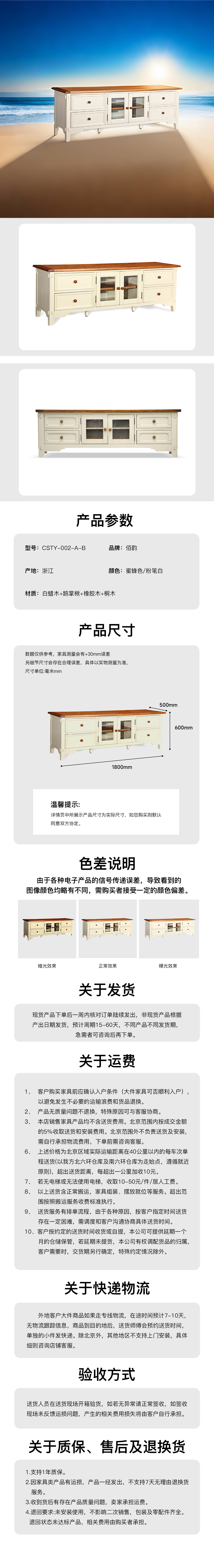 落基山电视柜-蜜蜂色/粉笔白全实木