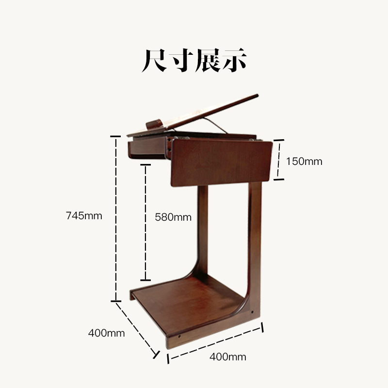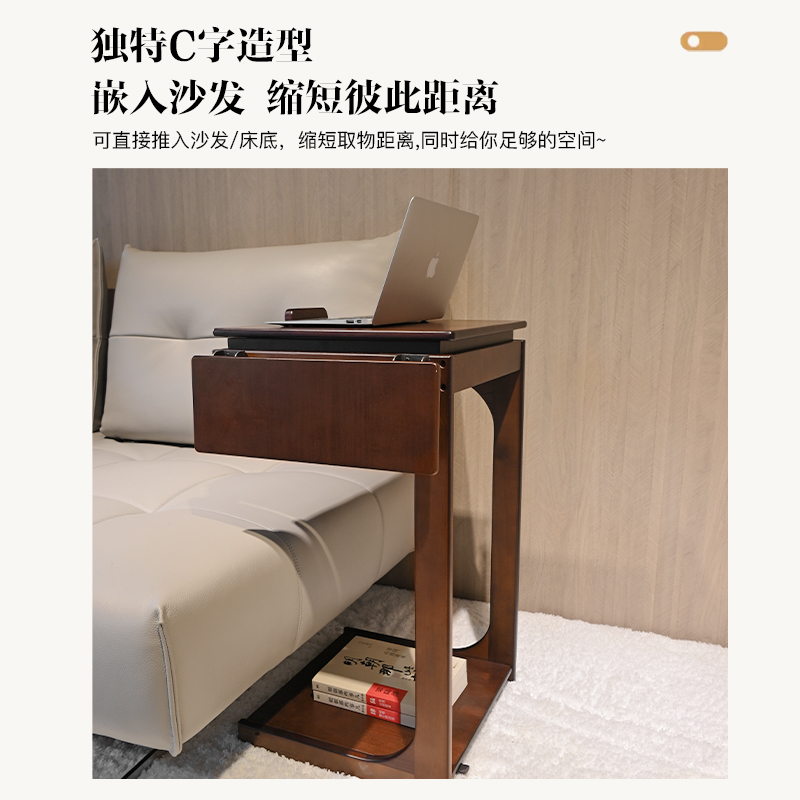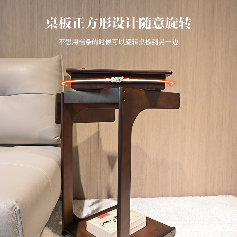 移动翻板边几胡桃色橡胶木实木