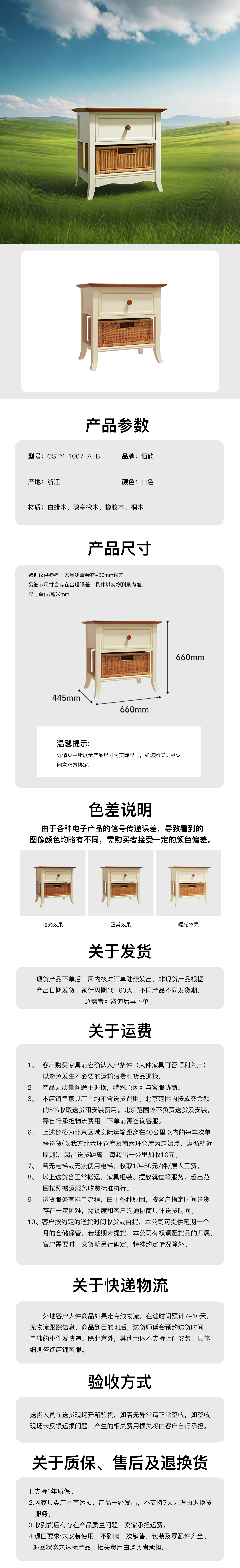 米勒边桌-蜜蜂色/仿古白白(整板)