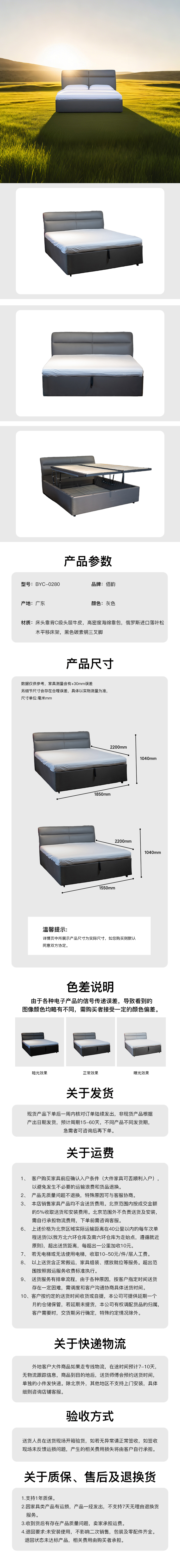 平移储物皮床接触面头层牛皮,平移床架BYC-0281