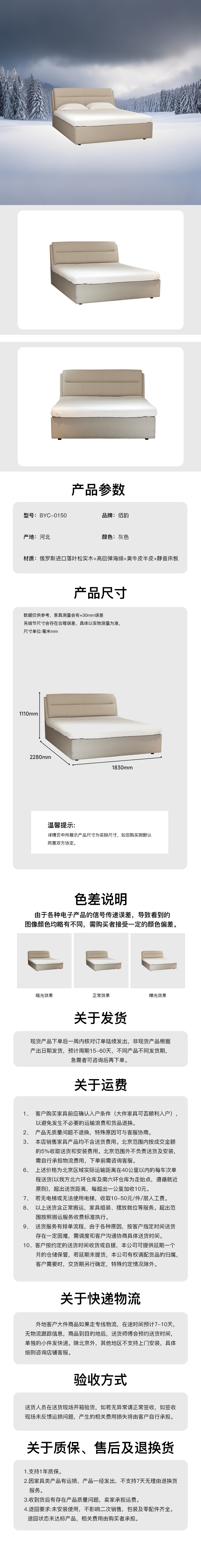 主材:俄罗斯进口落叶松实木+高回弹海绵+黄牛皮半皮+静音床板