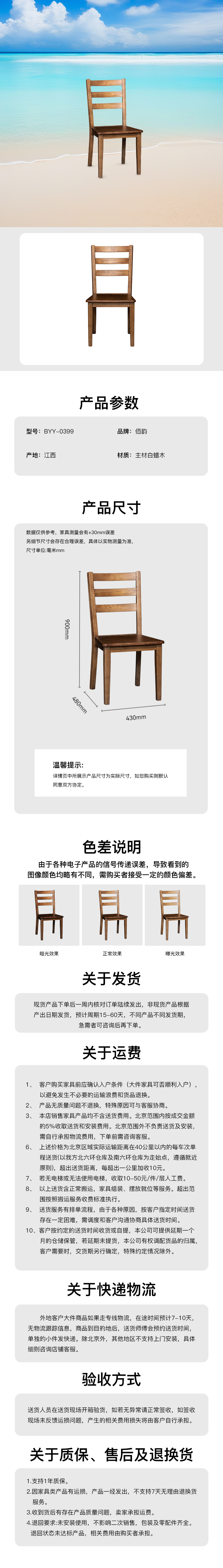 餐椅(胡桃色)主材白蜡木 BYY-0399