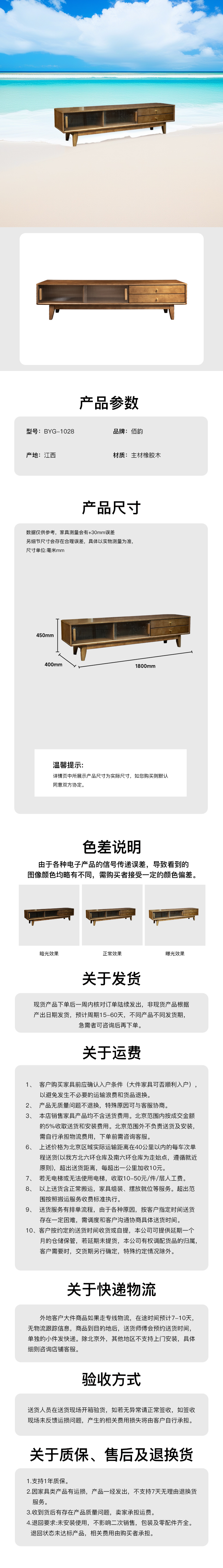 电视柜(胡桃色)主材橡胶木 BYG-1028