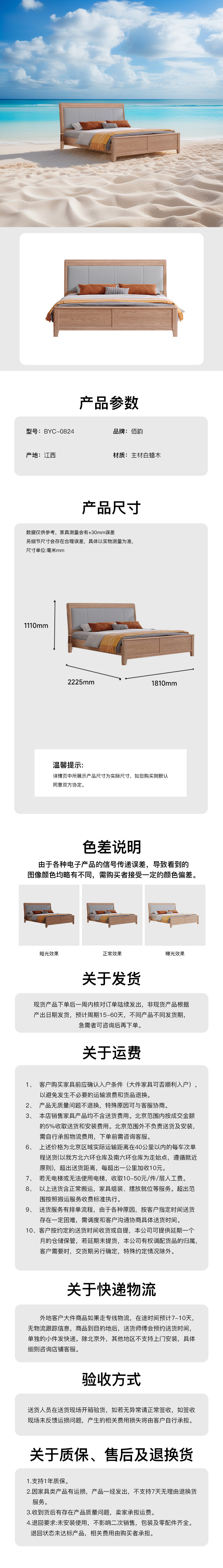 暮桉实木床(暖杏色)主材白蜡木 BYC-0824