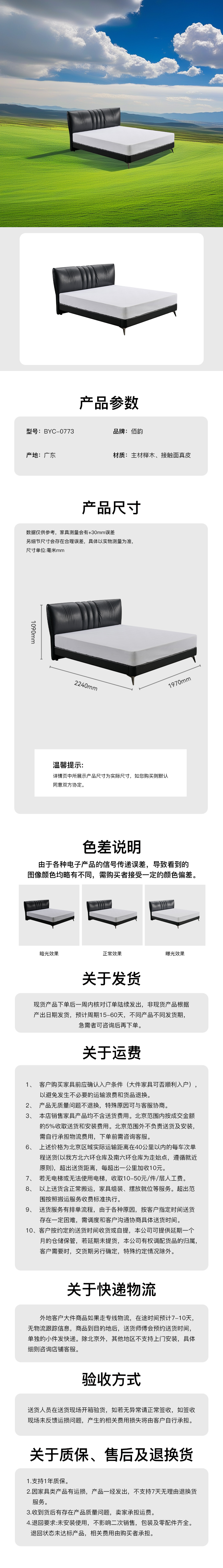 澜丘牛皮床主材榉木、接触面真皮 BYC-0773