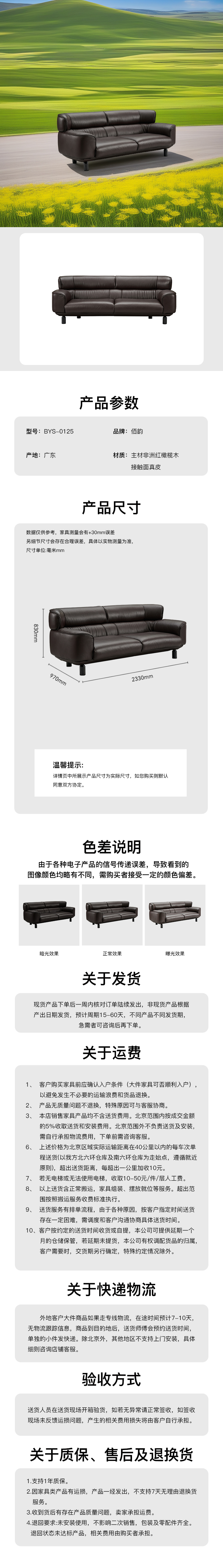 三人位沙发主材非洲红橄榄木、接触面真皮 BYS-0125