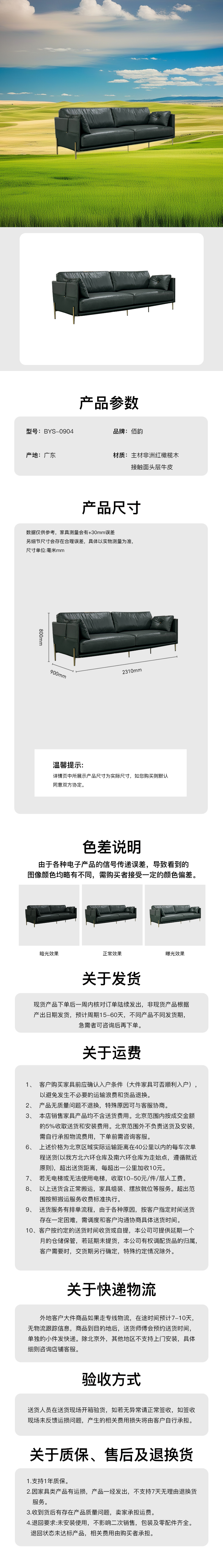 三人位沙发主材非洲红橄榄木、接触面头层牛皮 BYS-0904
