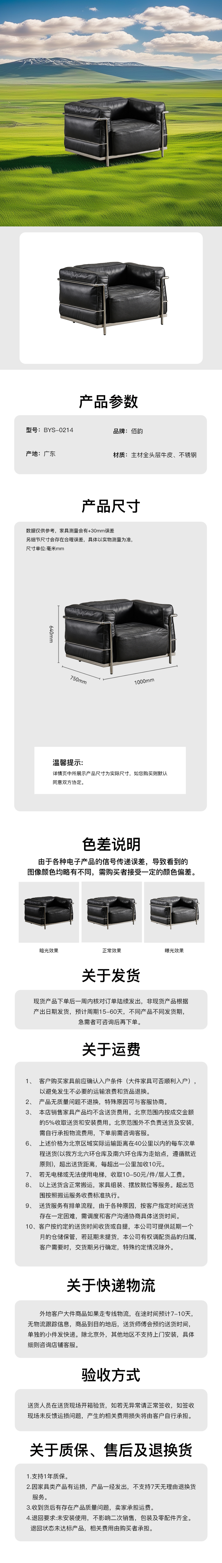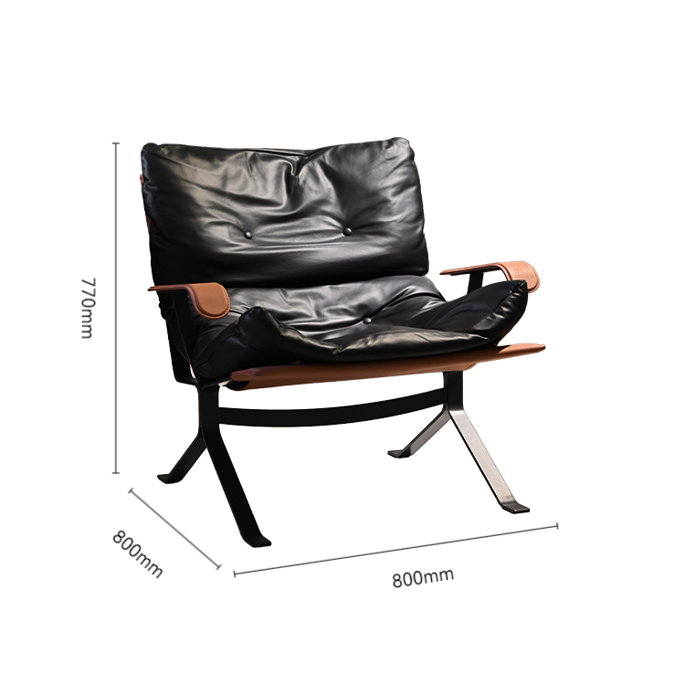 巴塞罗那休闲椅主材全头层牛皮、碳素钢 BYS-0216