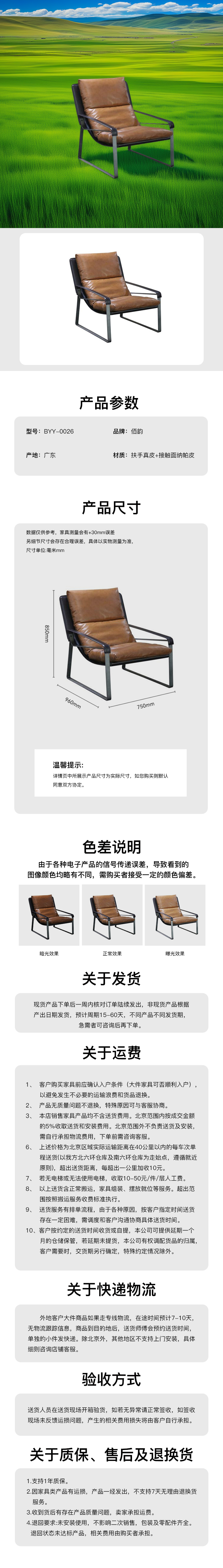 单人休闲椅扶手真皮+接触面纳帕皮 BYY-0026
