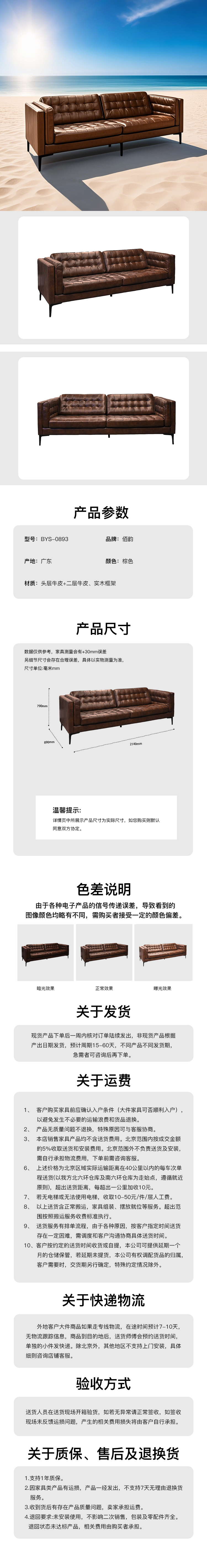 牛皮三位沙发接触面为牛皮 BYS-0893