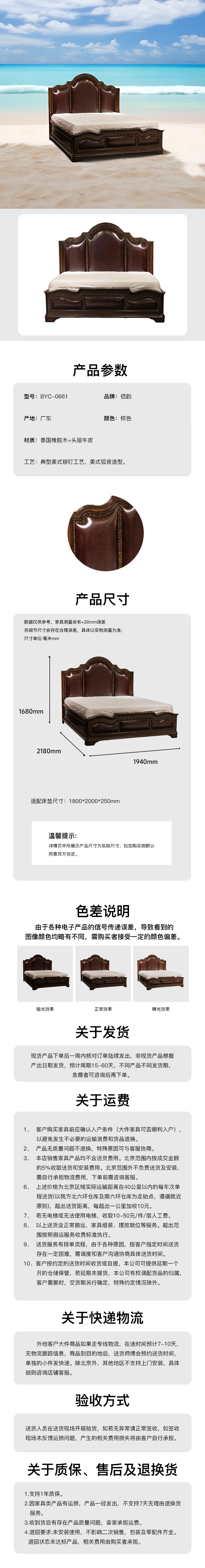 皮床泰国橡胶木+头层牛皮 BYC-0661