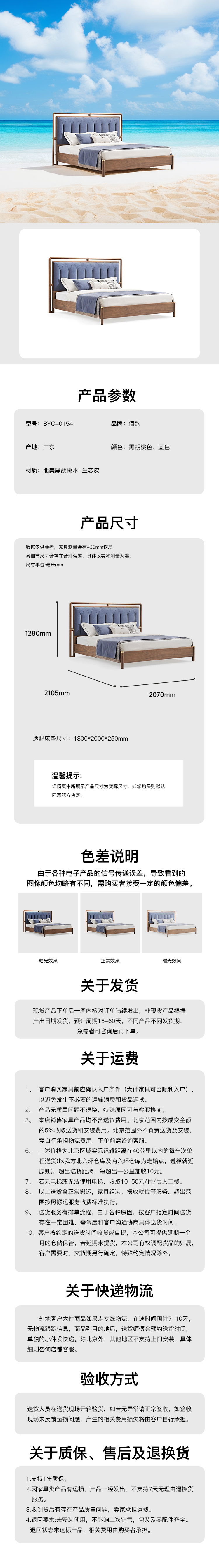 黑胡桃实木床北美黑胡桃木+生态皮 BYC-0154