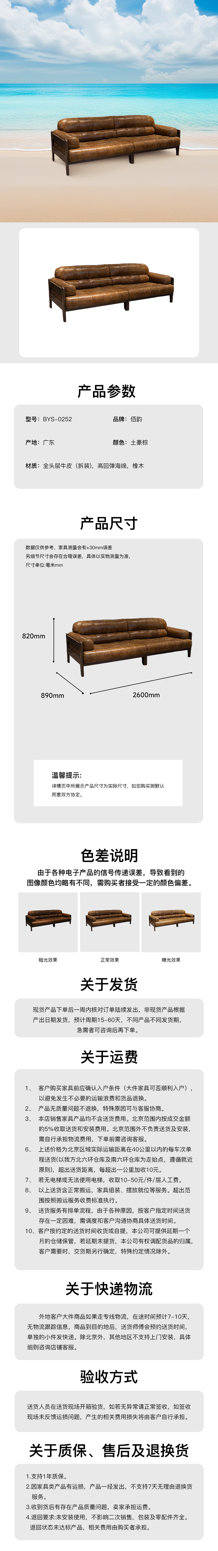 主材:土豪棕-头层牛皮(拆装),海绵,橡木架