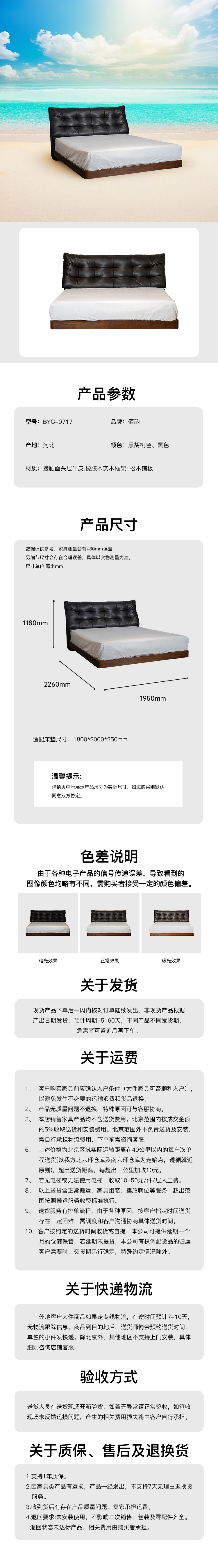 1.8米咖色软包皮床接触面头层牛皮 BYC-0717-0715